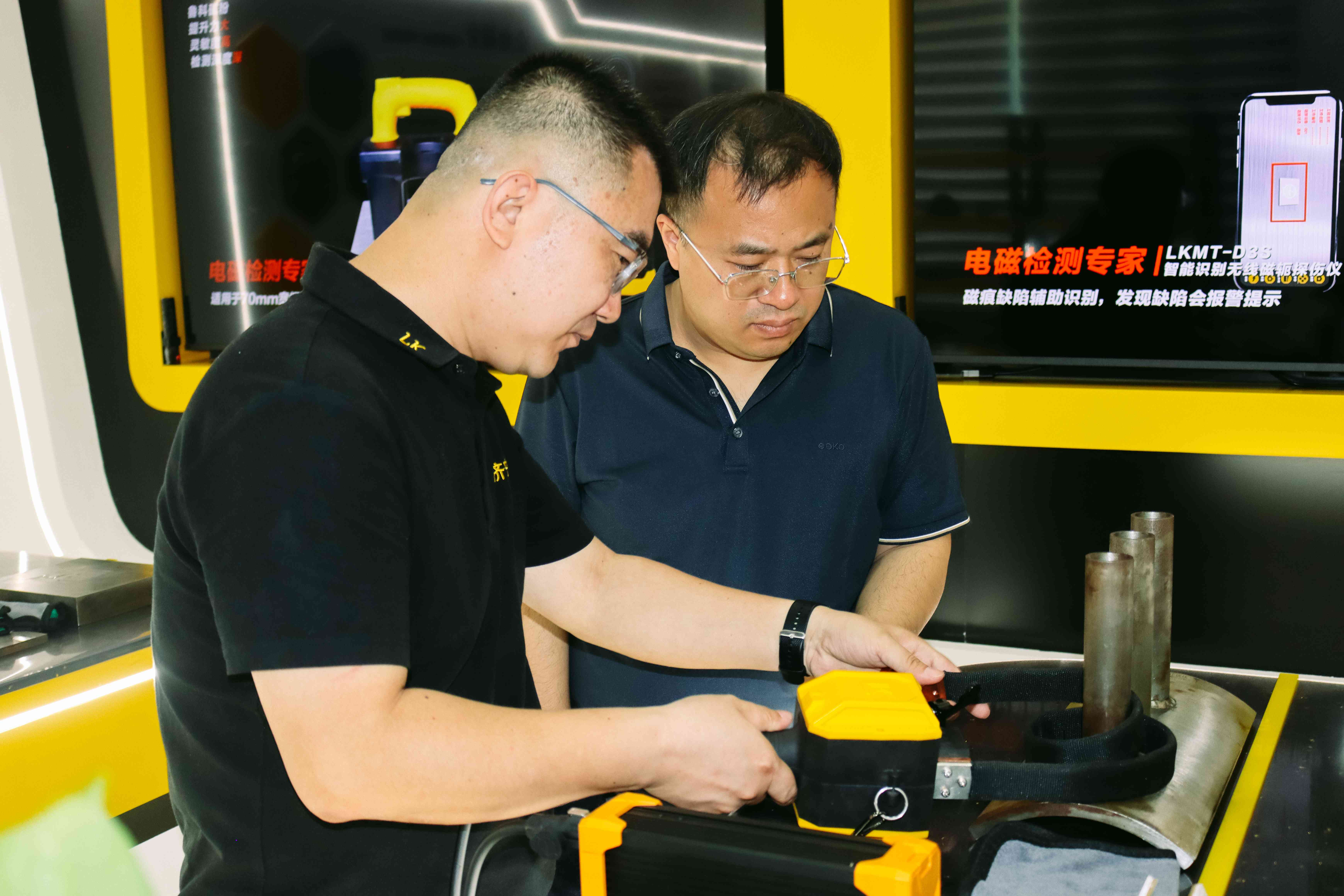 各位專家分別參觀了公司的 磁粉探傷儀(智能識別磁粉探傷儀、場景定制化磁粉探傷儀、一體式磁粉探傷儀、充電式磁粉探傷儀等)交流電磁場檢測儀(ACFM) 自動化檢測儀(磁粉探傷機(jī)器人、腐蝕測厚機(jī)器人)。